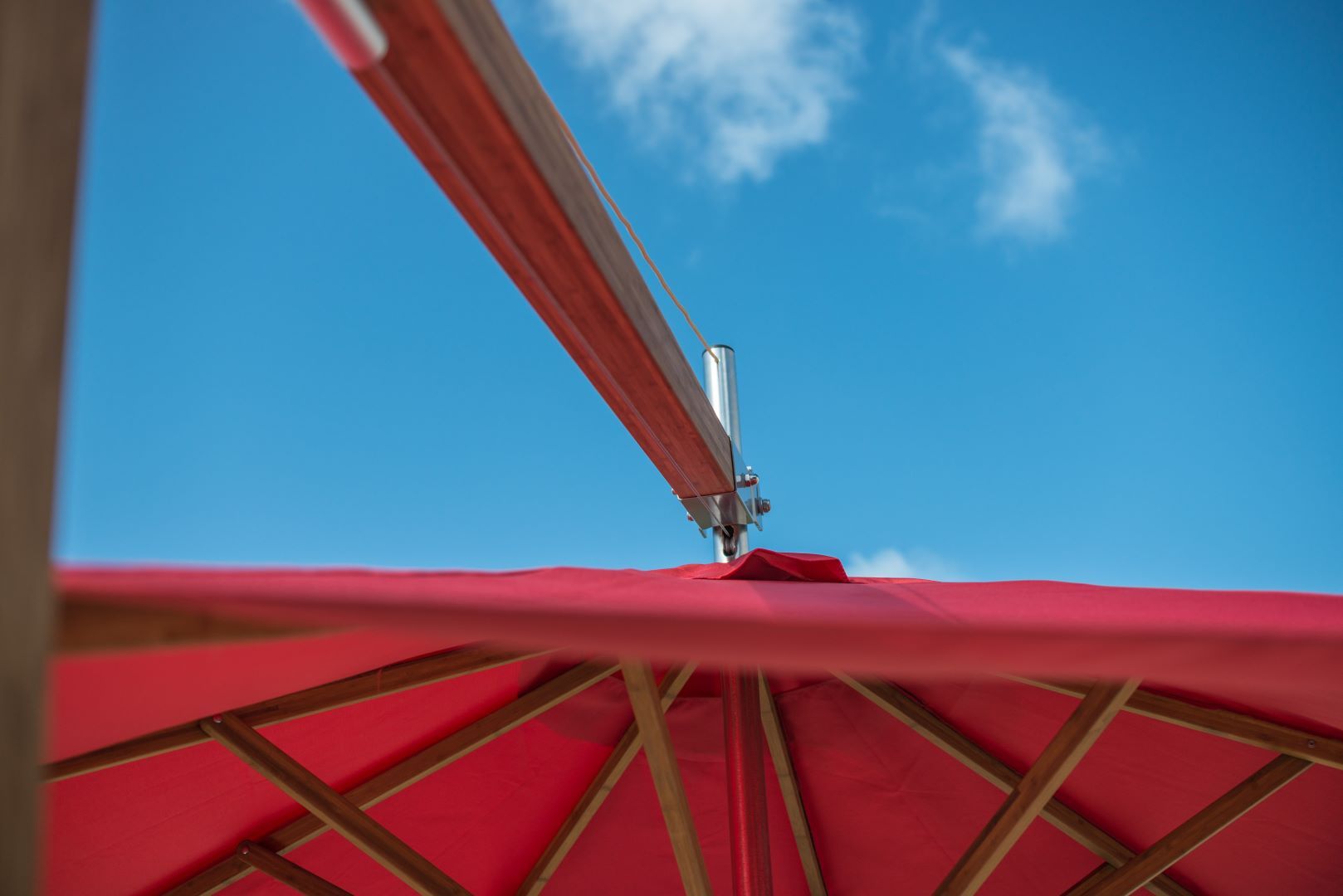 Les matériaux de haute qualité utilisés garantissent la stabilité du parasol même par vents forts, et sont les caractéristiques principales qui font de la marque Bambrella un nom reconnu.